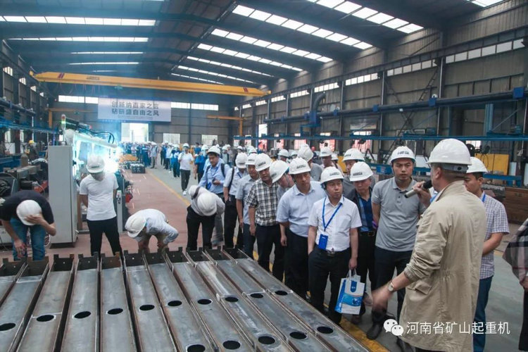 24日下午,河南礦山迎來了多批重要的客人,國家質(zhì)檢總局特種設(shè)備局相關(guān)領(lǐng)導,中國重型機械工業(yè)協(xié)會相關(guān)領(lǐng)導、重機協(xié)會橋式起重機委員會300家會員單位和全國800家起重裝備整機制造商、配套件制造商及服務商分批蒞臨河南礦山,實地參觀考察河南礦山。公司創(chuàng)始人崔培軍、總經(jīng)理任海濤分別接待,并熱情的向來訪客人介紹了公司概況、工藝革新及機器人換人計劃等。